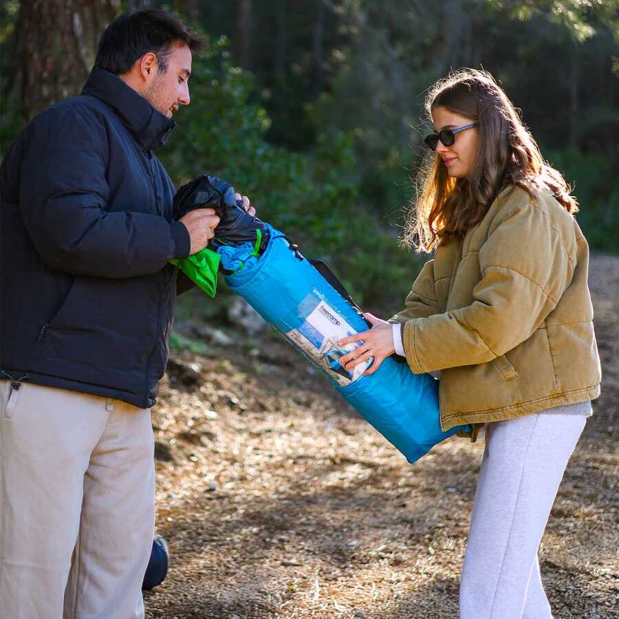 - Taşıma çantası, çadır polleri, 2 adet gölgelik direği, 8 adet kazık ve gerdirme ipleri
