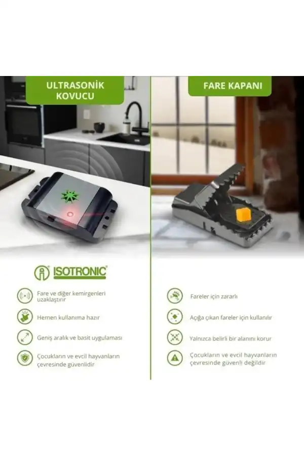 Gelince Haber Ver40 metrekarelik alanlarda etkin bir şekilde fare ve sıçan kovma sağlar. Pilli tasarımı sayesinde elektrik prizine ihtiyaç duymadan hareket özgürlüğü sunar. Ultrasonik frekanslar kullanarak zararsız bir yöntemle istenmeyen haşereleri uzaklaştırır. Alman menşeli olup, yüksek kalite standartlarına uygun üretilmiştir. Biyosidal kayıt numarası bulunmayan güvenli bir üründür; evinizdeki veya ofisinizdeki güvenliğini artırır. Hava koşullarına dayanıklı. Pil ile çalışır.; (6xAAA). Piller sipariş e dahildir.