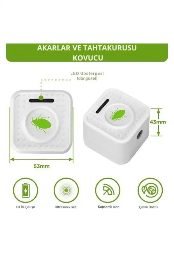 Gelince Haber Ver30 metrekarelik alanlarda etkin bir şekilde akar ve tahtakurusunu kovmak için tasarlanmıştır. Mobil yapısı sayesinde kolayca taşınabilir ve istediğiniz yerde kullanabilirsiniz. Pil ile çalışan bu cihaz, kesintisiz kullanım imkanı sunar. Ultrasonik frekans ses dalgaları aracılığıyla akarların ve tahtakurularının yaşam alanlarını rahatsız eder, böylece onları uzaklaştırır. Güvenli bir kullanım sağlar; tehlikeli madde içermez ve biyosidal kayıt numarasına sahip değildir. Alman menşeli olup yüksek kalite standartlarına uygun üretilmiştir. Pil ile çalışır.; (4xAAA).; - Piller sipariş e dahildir. Kullanım Alanları: Kapalı Alanlar/ Açık Alanlar.
